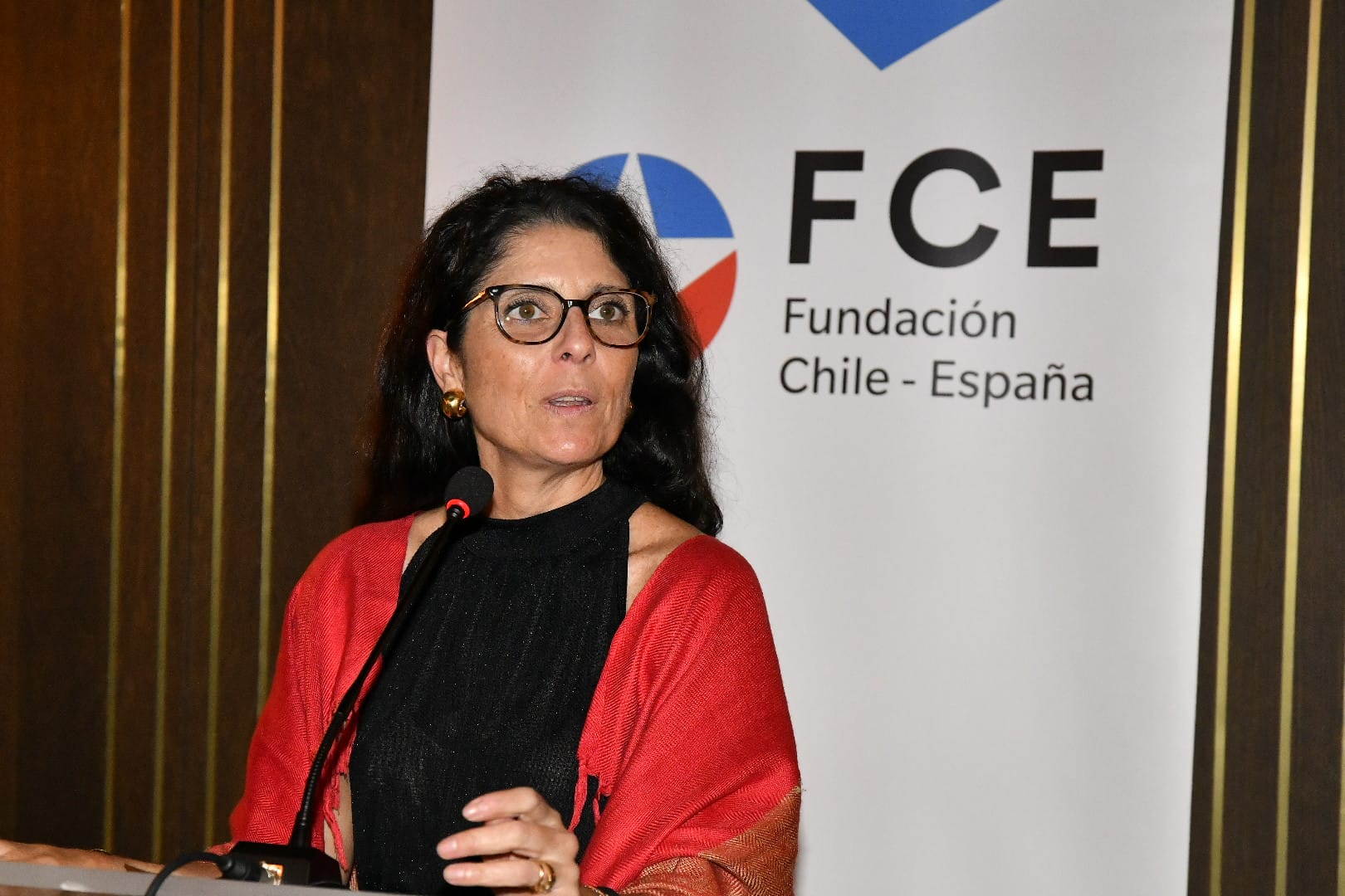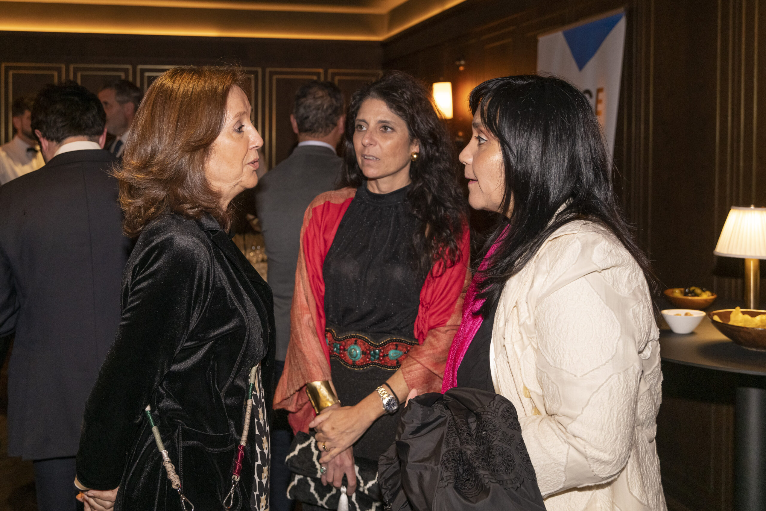 La directora ejecutiva de Fundación Chile-España, María Ángeles Osorio, junto al embajador de Chile en España, Javier Velasco Villegas, la directora del Transporte Público Metropolitano, Paola Tapia Salas y Virginia Font de las Matas, la gerente general de CAMACOES, comunicaron la bienvenida oficial en una cena en el Club Financiero Génova.