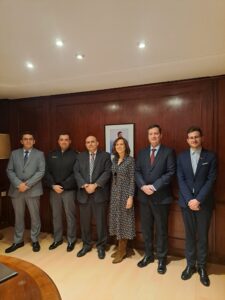 Como ejemplo de la buena relación entre ambos países, María Angeles Osorio, directora ejecutiva de FCE, y Julio Martínez, gestor de proyectos de FCE, se reunieron con varios de los nuevos agregados militares de dicha embajada. Estuvieron presentes el Coronel Rodrigo Rojas, Agregado de Defensa y Militar; el Capitán de Navío Mario Costa, Agregado Naval; el Coronel de Aviación Gabriel Figueroa, Agregado Aéreo; y Francisco Devia, el Ministro Consejero de la Embajada.